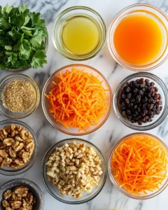 A refreshing, crisp salad of shredded carrots, apples, raisins, and nuts tossed in a bright citrus dressing.