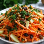 Carrot and apple salad is a vibrant, refreshing dish that balances sweetness, crunch, and tang in every bite. The combination of shredded carrots, crisp apples, dried fruit, and nuts, dressed with a zesty citrus-honey dressing, makes it a perfect side dish or light snack. Follow these steps to create a salad that’s visually appealing, flavorful, and full of texture.
