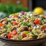 A bright and refreshing pasta salad made with tender orzo, crisp vegetables, fresh herbs, and a zesty Greek-style lemon dressing.