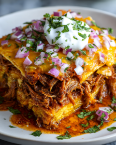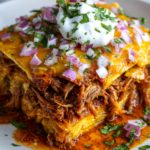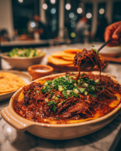 Inspired by the traditional birria of Jalisco, this dish transforms the classic shredded beef and consommé into a layered, cheesy bake that’s both hearty and crowd-pleasing. It captures everything you love about birria tacos—deeply seasoned meat, crispy edges, and rich sauce—but in an easy, oven-friendly format that guarantees a cheesy comfort explosion.
