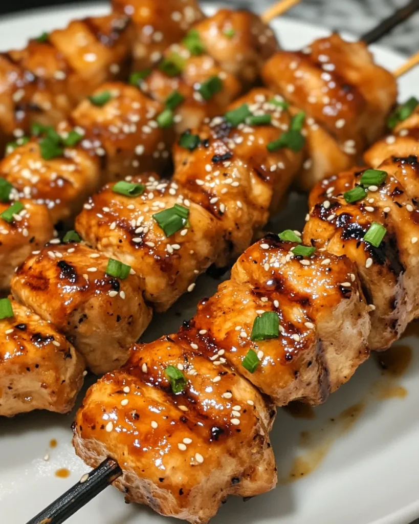 What sets this chicken apart is the harmony of flavors and textures. The chicken is marinated in a combination of soy sauce, ginger, garlic, and honey, which ensures a tender, juicy interior while creating a glossy, flavorful exterior when grilled or baked. The skewers make it fun to eat and ideal for parties, family dinners, or even a quick weeknight meal. Plus, the versatility of this recipe allows you to tweak the sweetness, spice level, and even the garnish to suit your preferences, making it a crowd-pleaser every time.