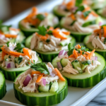 Crisp cucumber slices filled with creamy chicken salad for a refreshing, protein-packed snack or light meal.