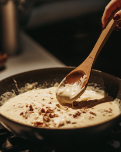 • Stir in milk, cream, and cream cheese until smooth.