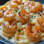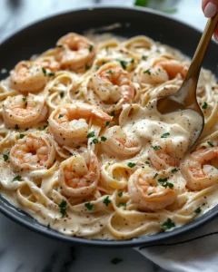 A creamy and indulgent pasta dish with tender shrimp, rich Alfredo sauce, and perfectly cooked fettuccine.