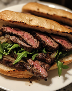Medium-rare to medium is ideal for steak sandwiches. Cooking to medium-rare (internal temperature around 130–135°F / 54–57°C) keeps the meat tender and juicy. Since the steak may be briefly reheated during assembly or broiling, slightly undercooking ensures it doesn’t become dry.