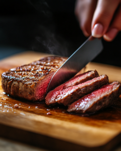 Transfer the steak to a cutting board and let it rest for 10 minutes before slicing. Resting allows the juices to redistribute.